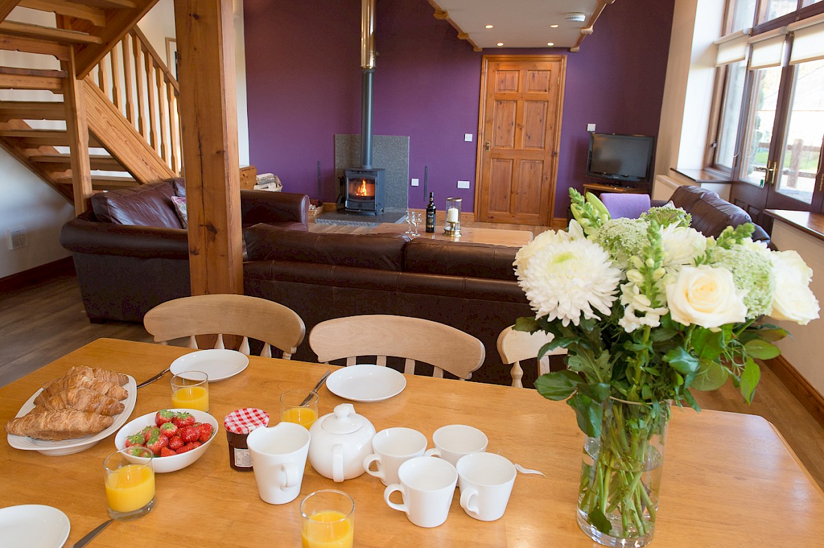The high vaulted ceiling in the lounge area creates a sense of space whilst the wood burner and central heating ensures a beautifully warm cosy space to relax and unwind on those chilly evenings.