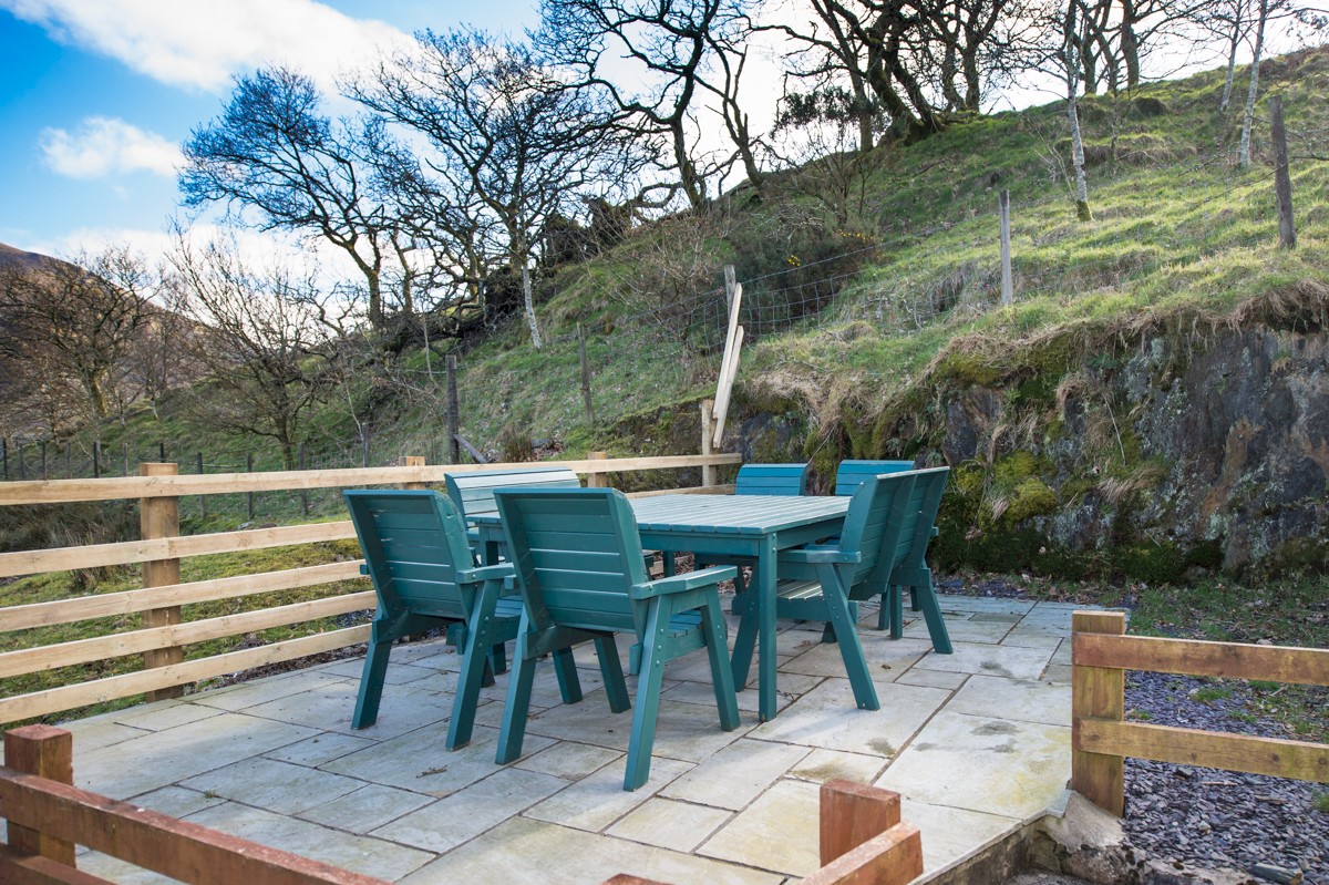 Outside there is a lawn to the front and side of the property and patio with outdoor furniture which provide the perfect space to relax and enjoy the views of the surrounding mountians. Take the time on a clear night to admire the stars and tranquillity of such a peaceful location.