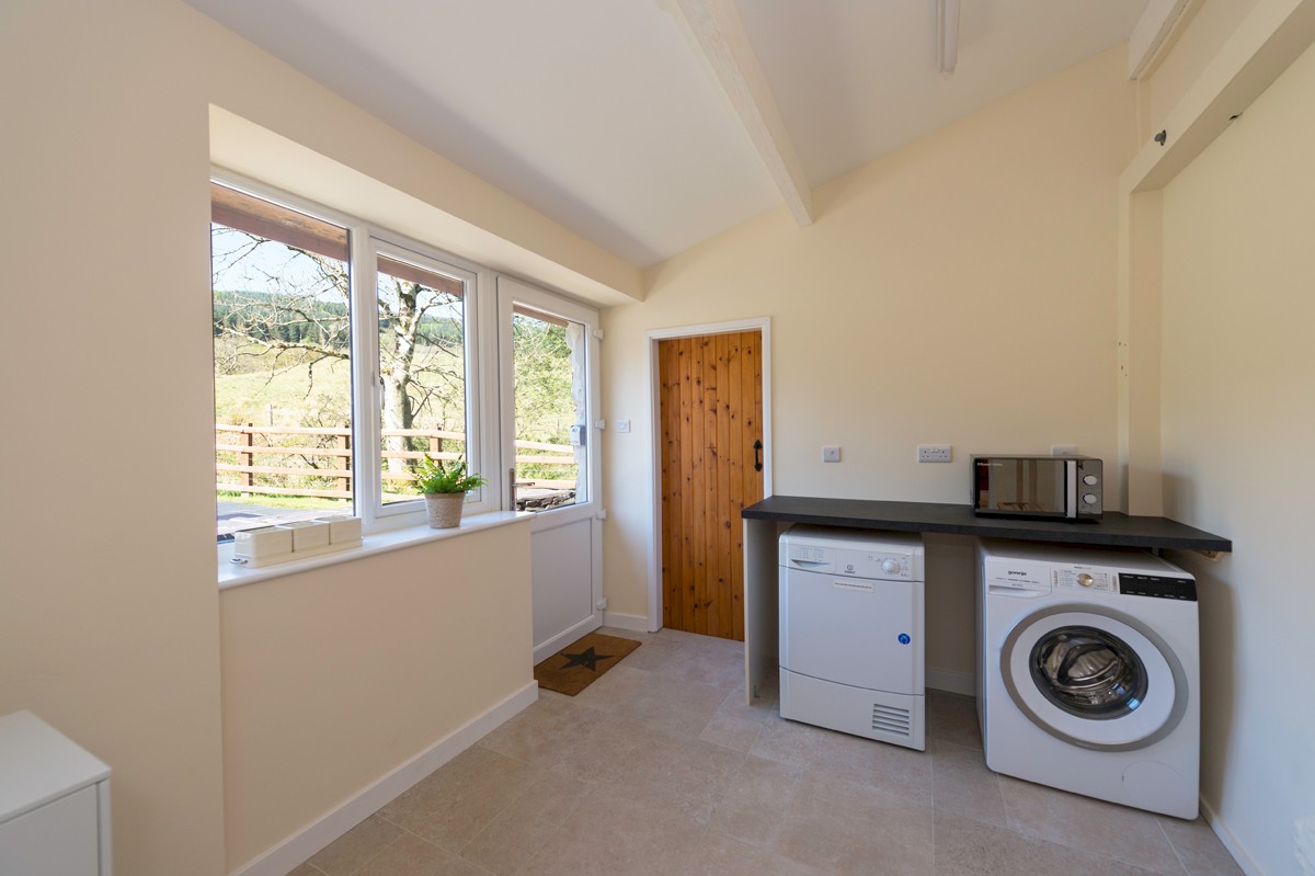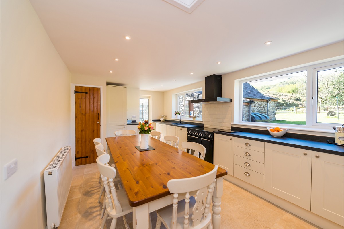 The kitchen diner with an electric range cooker and long table offers ample space for family meals boasting views of Mynydd Mawr Mountain. The adjoining utility room is an ideal space for drying coats and muddy walking boots. Through the kitchen into the conservatory this offers comfortable seating and relaxing space to admire the stunning scenery whilst watching the sheep grazing and lambs pranking in the spring evenings.